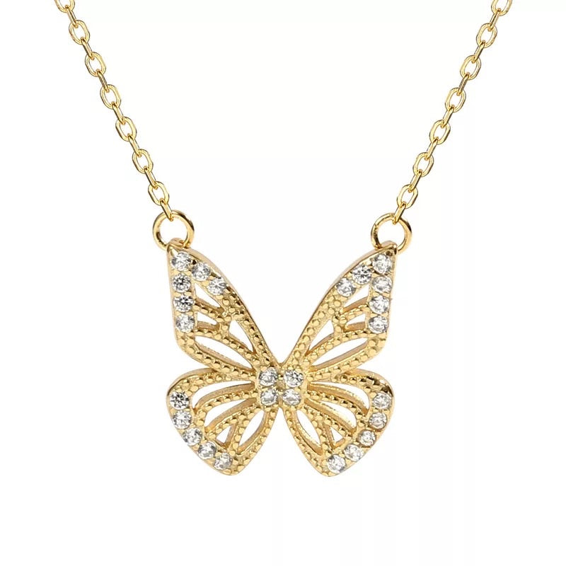 Gold Butterfly Necklace with Zirconias